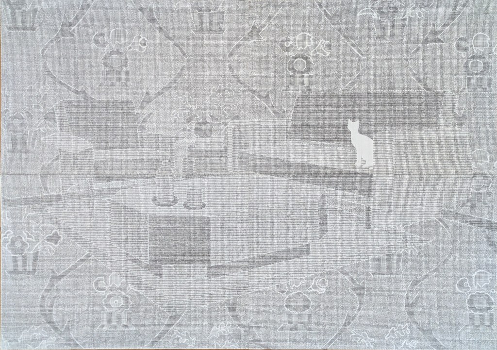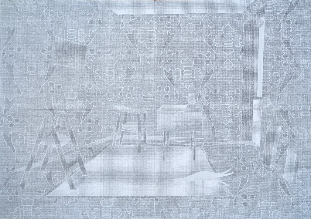 « Cuisine – Matisse », (Série Chez nous) 2026. Encre et graphite sur papier. 29,7 x 42 cm.