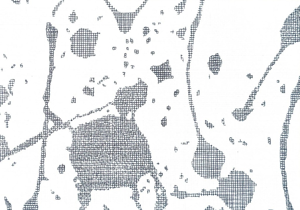 « Reticolo di FILI », 2025. Encre et graphite sur papier, 10,5 x 14,8 cm. Fonds Archive Station