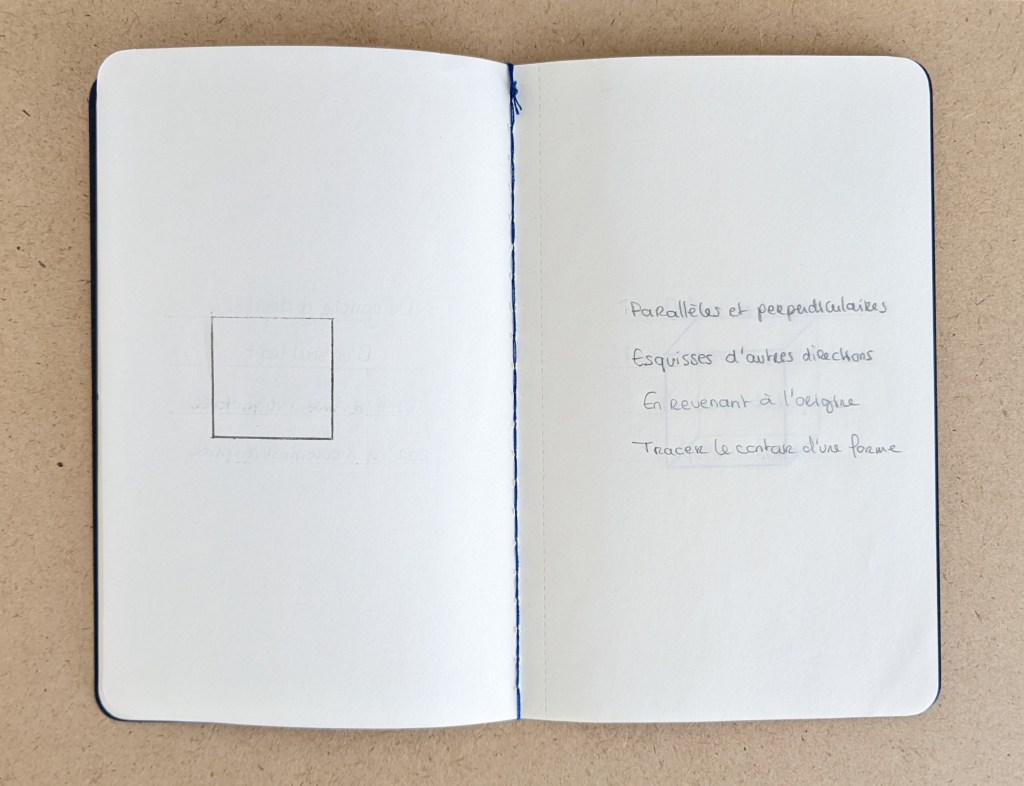 « Parallèles et perpendiculaires », 2019. Un carnet de 25 pages. Collection privée.