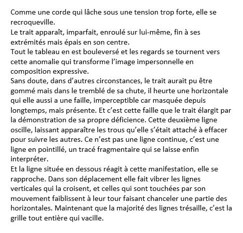 Le carnet « Parallèles et perpendiculaires », activable lors de lectures publiques, est un ensemble de vingt-cinq haïkus sur la grille en peinture, son rapport à l’art, son rapport au réel.